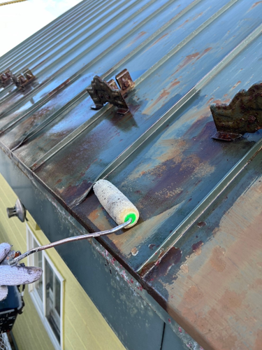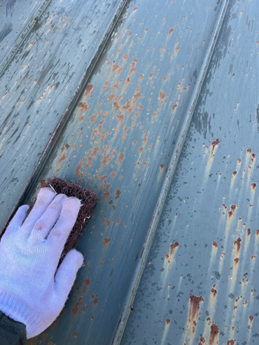 入念なケレン作業と重防錆剤の塗布を行い、日本ペイントの「ファインルーフシリコン」で仕上げることで、屋根の保護性能と美観の向上を図っています。