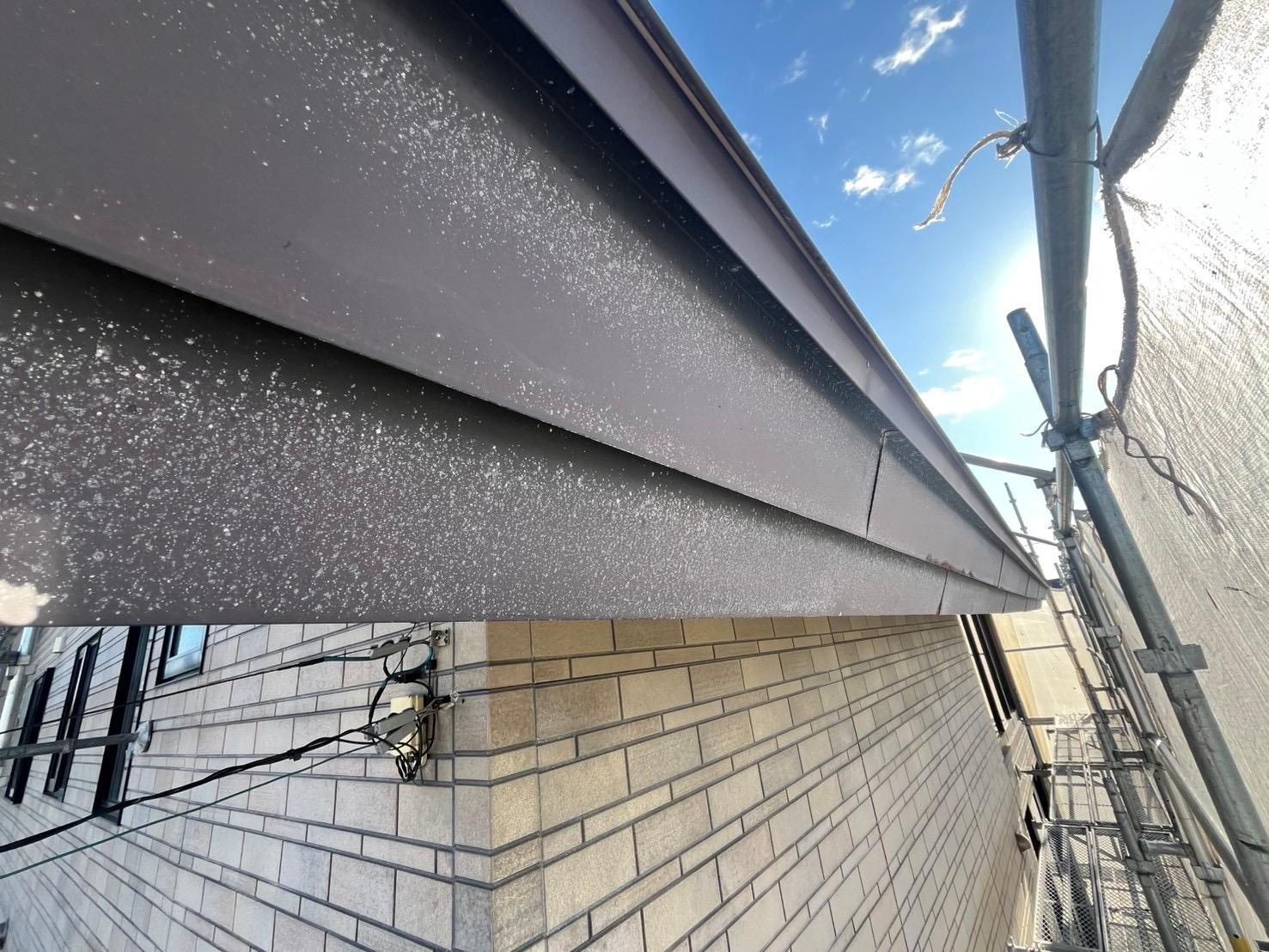 まずは足場を設置し、屋根と外壁の状態を徹底的に確認。特に屋根は金属製で、部分的にサビが進行していたため、ケレン(サビ落とし)を丁寧に実施しました。